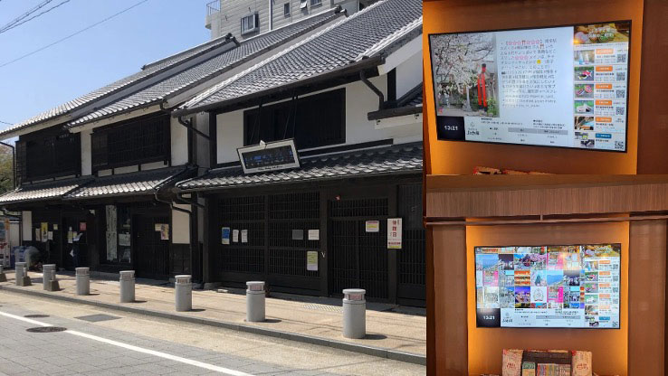 地下鉄 京都市役所駅の商業施設内メインディスプレイ及びその他24箇所のディスプレイに京都近郊の口コミ情報を配信。