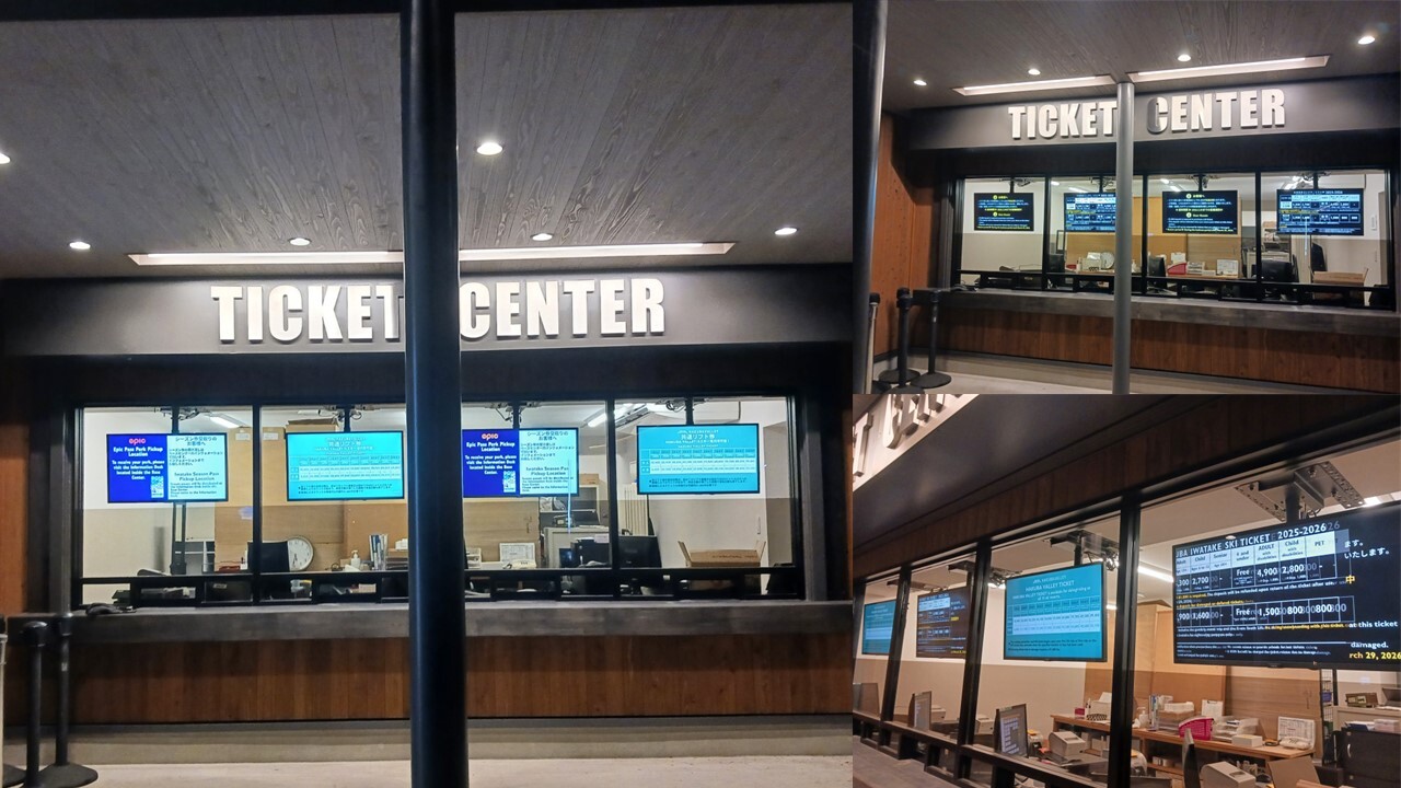 32型サイネージディスプレイを4台、チケットカウンターへ設置。